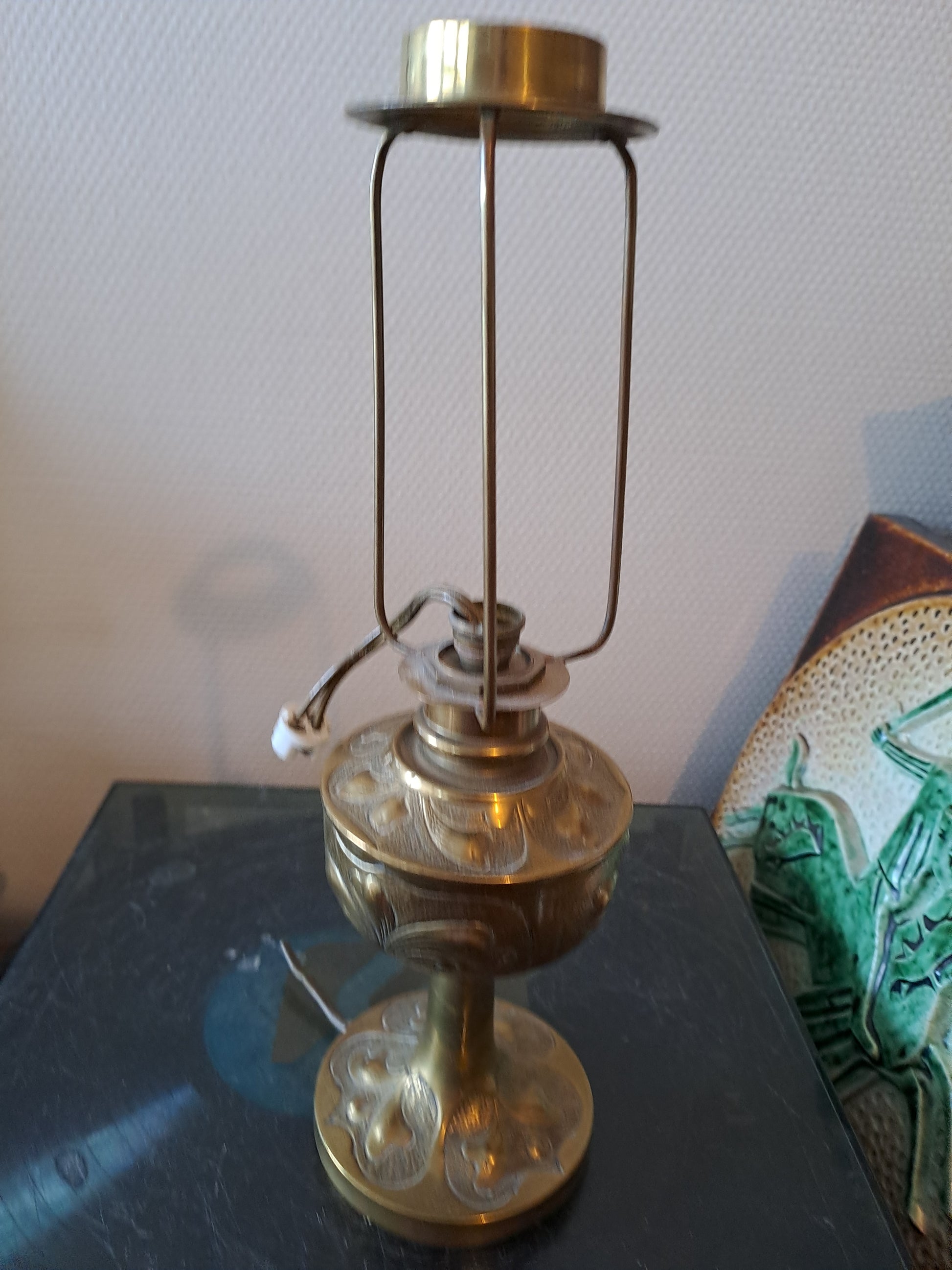 Ancienne Lampe À Pétrole Monté En Lampe.