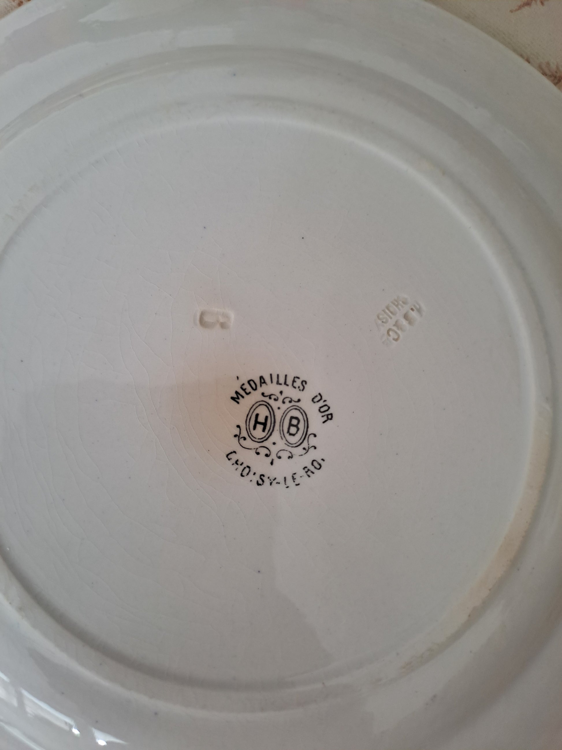 Assiette décorative Parlante. Faïence. H. B. Choisy Le Roi. N°12.