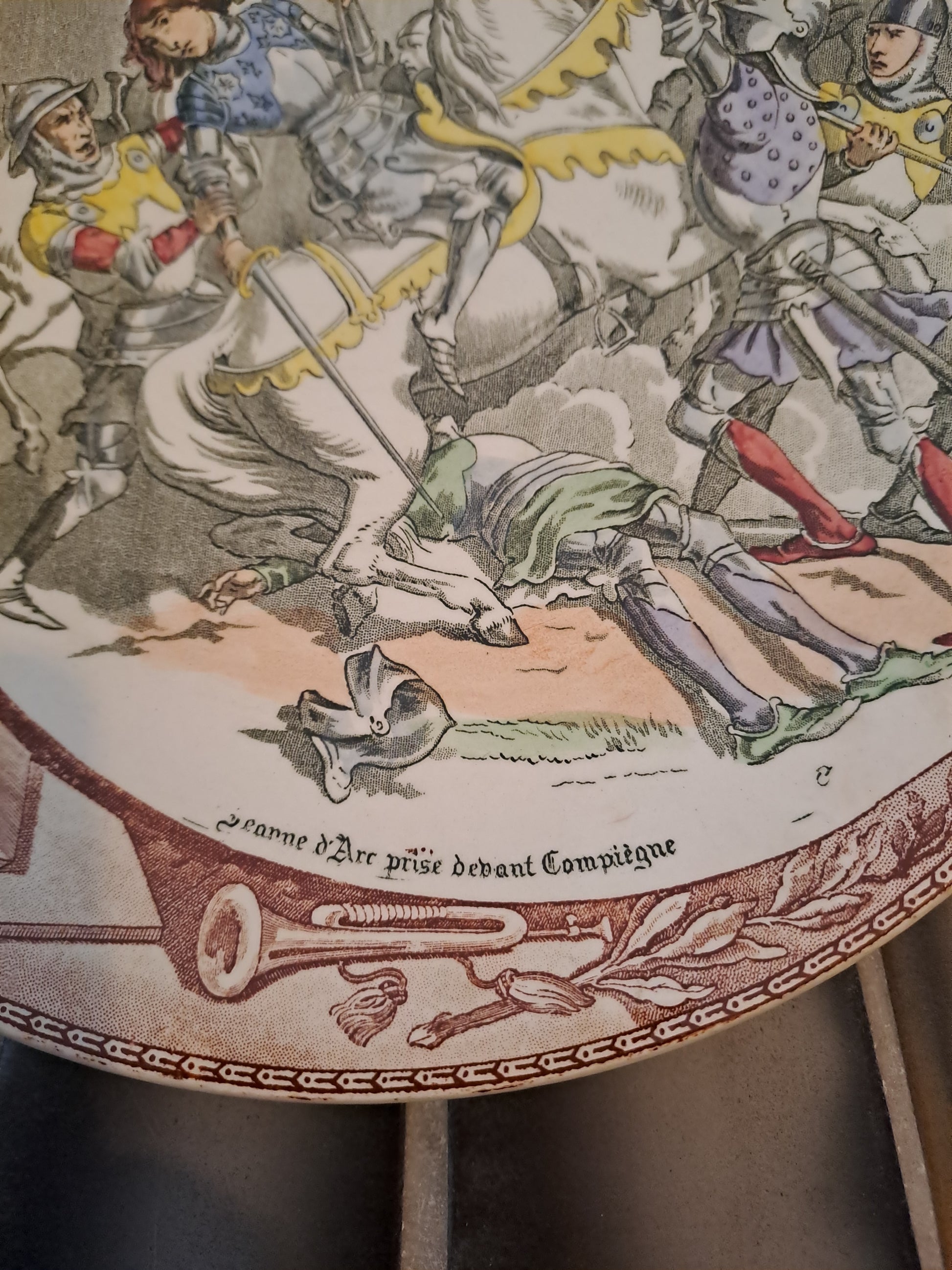 Assiette décorative. Sarreguemines. Jeanne d'Arc Prise Devant Compiègne. Ancien décoration vintage catholique