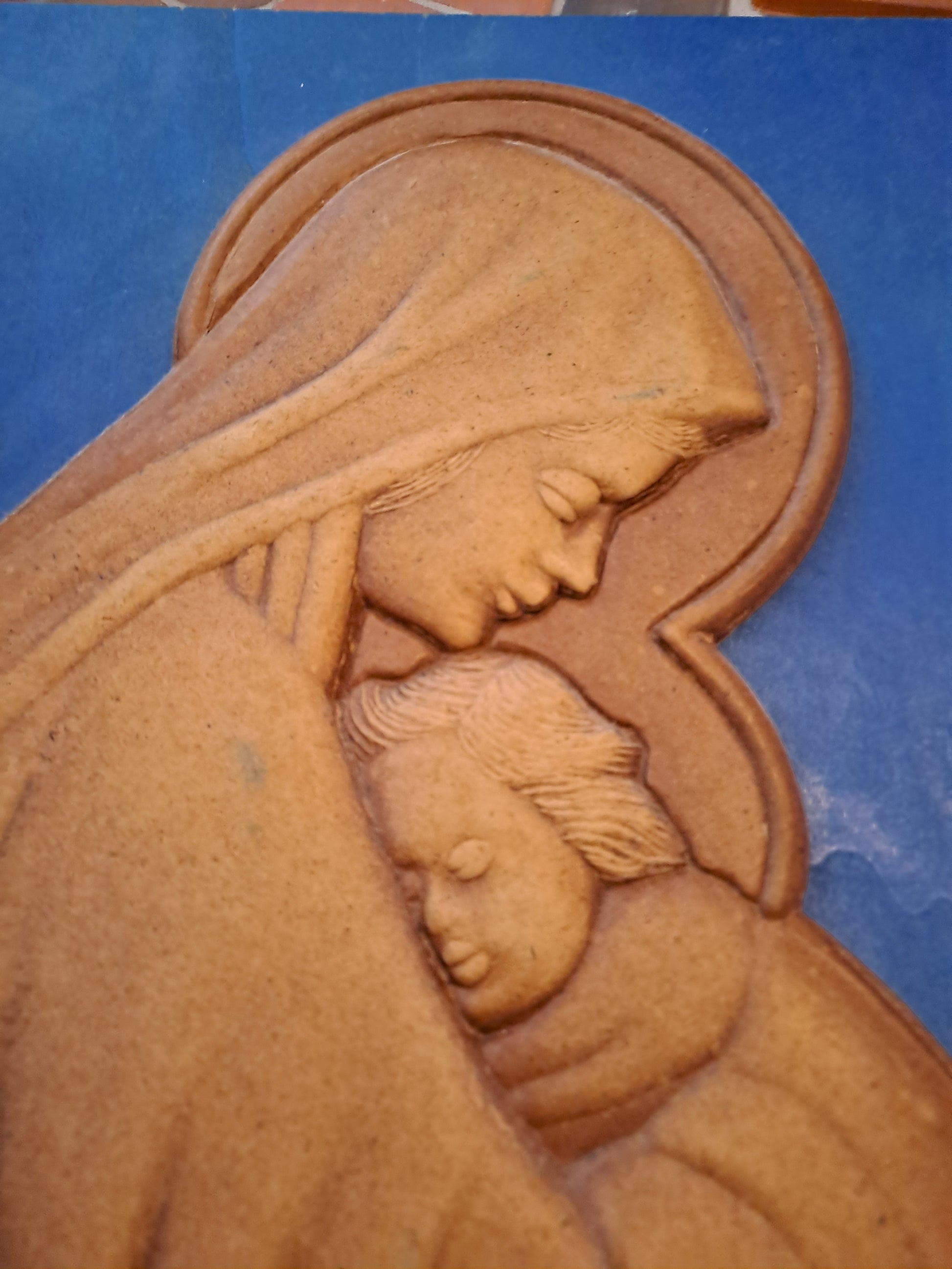 Cadre Représentant La Sainte Vierge Marie Portant L'enfant Jesus. Bois Et...
