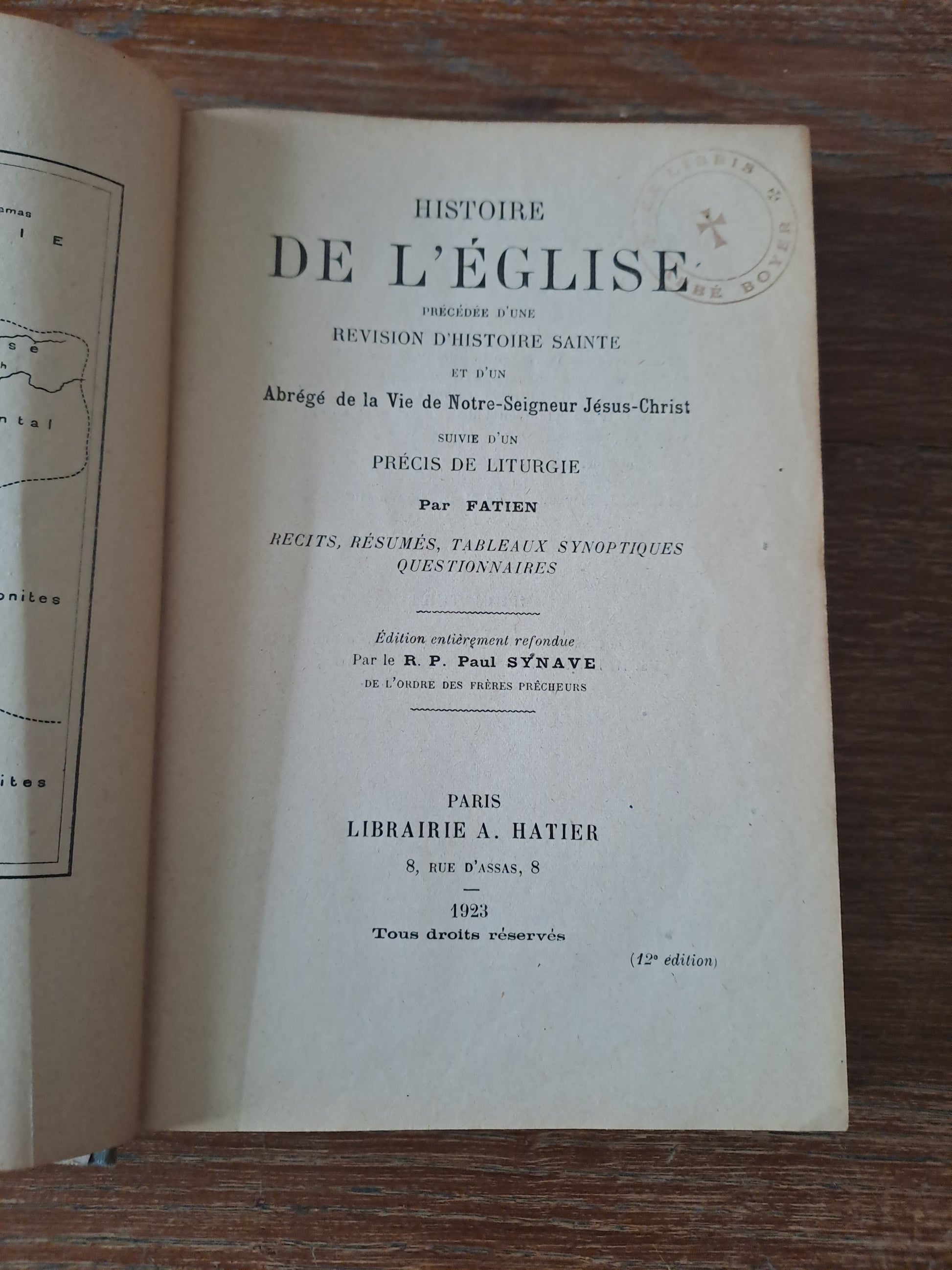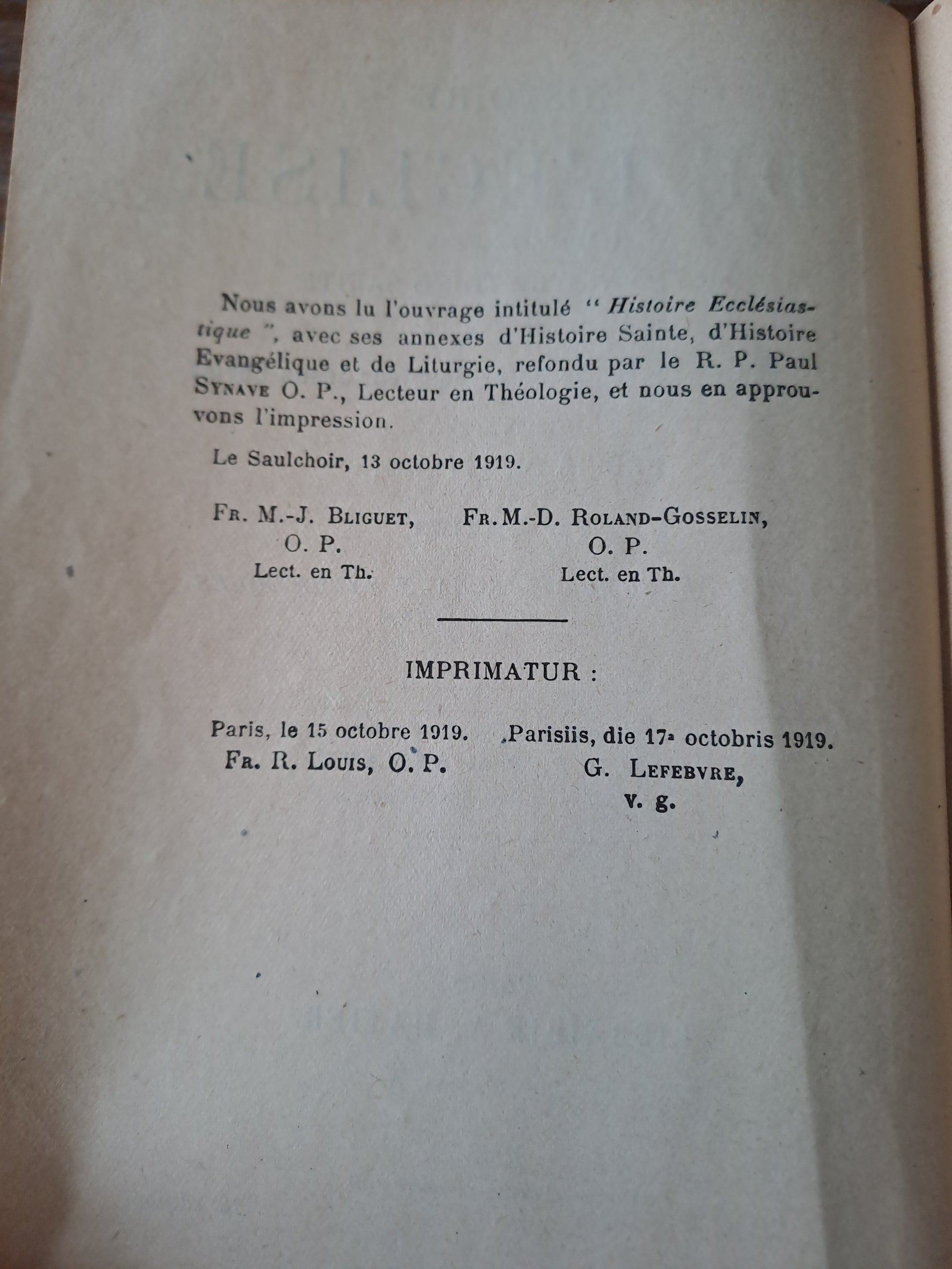 Histoire de l'église précédée d'une révision d'histoire Sainte et d'un abrégé de la vie de Notre-Seigneur Jésus-Christ et d'un suivie d'un précis de liturgie. 1923. Imprimatur.