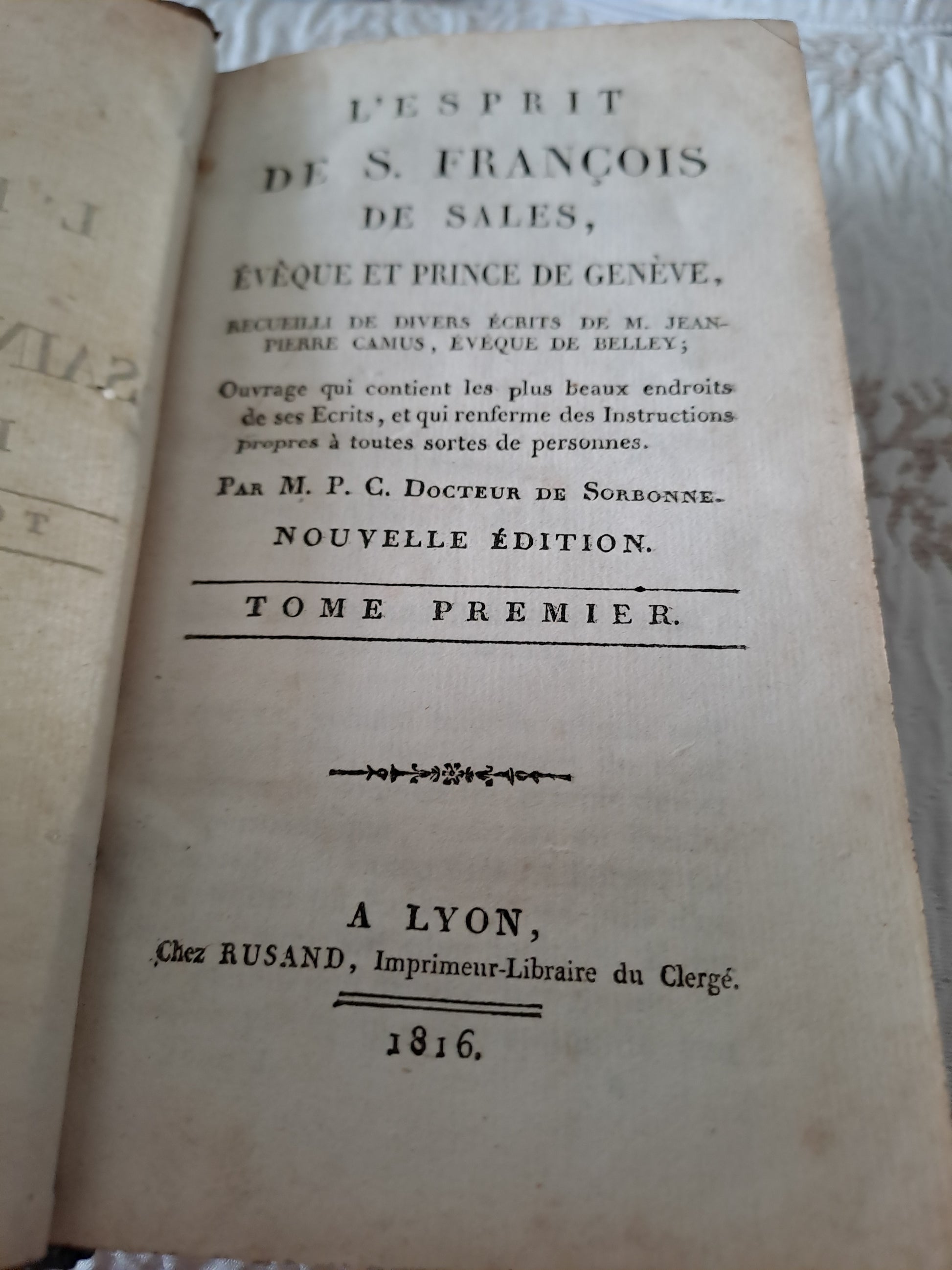 L'esprit de Saint François de Sales. T1. 1816. Ancien livre vintage catholique.