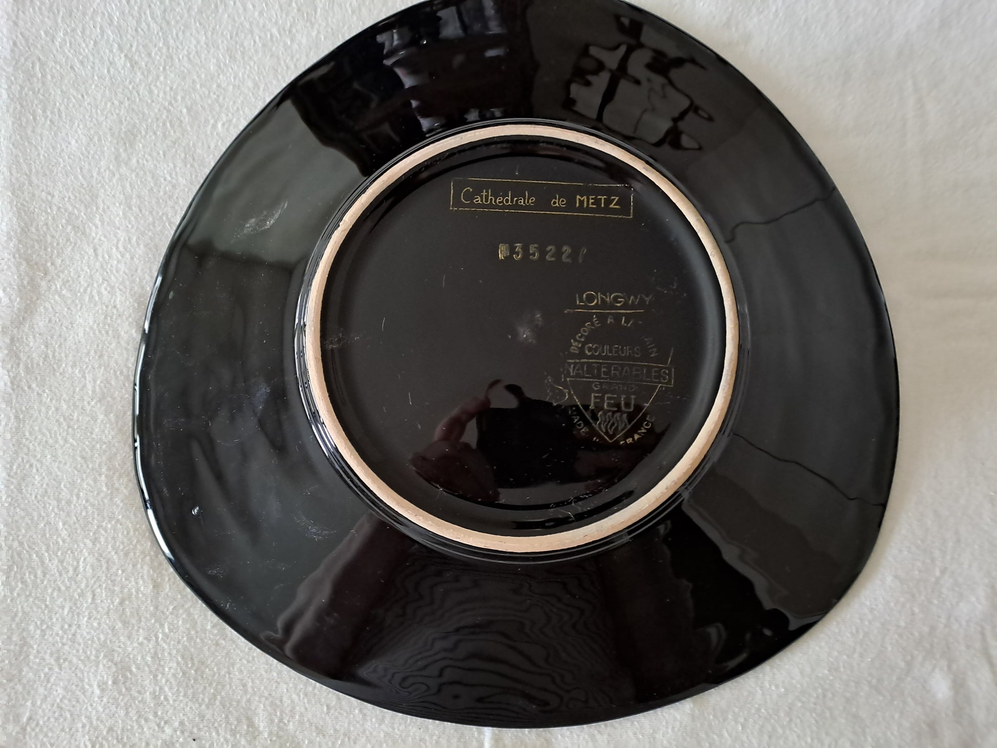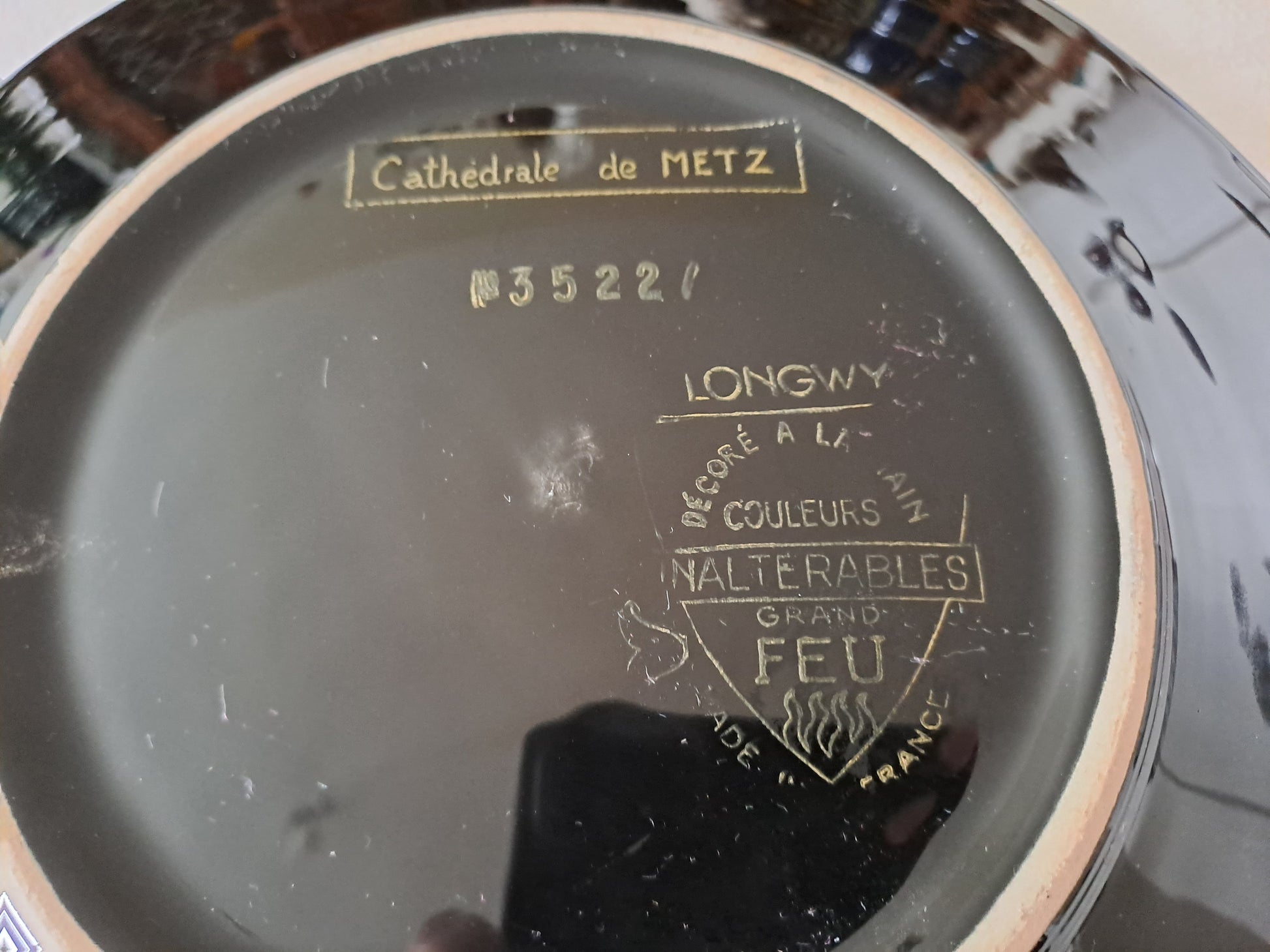 Longwy. Assiette Cathedrale De Metz N° 3522. Décoré À La Main. Grand Feu.
