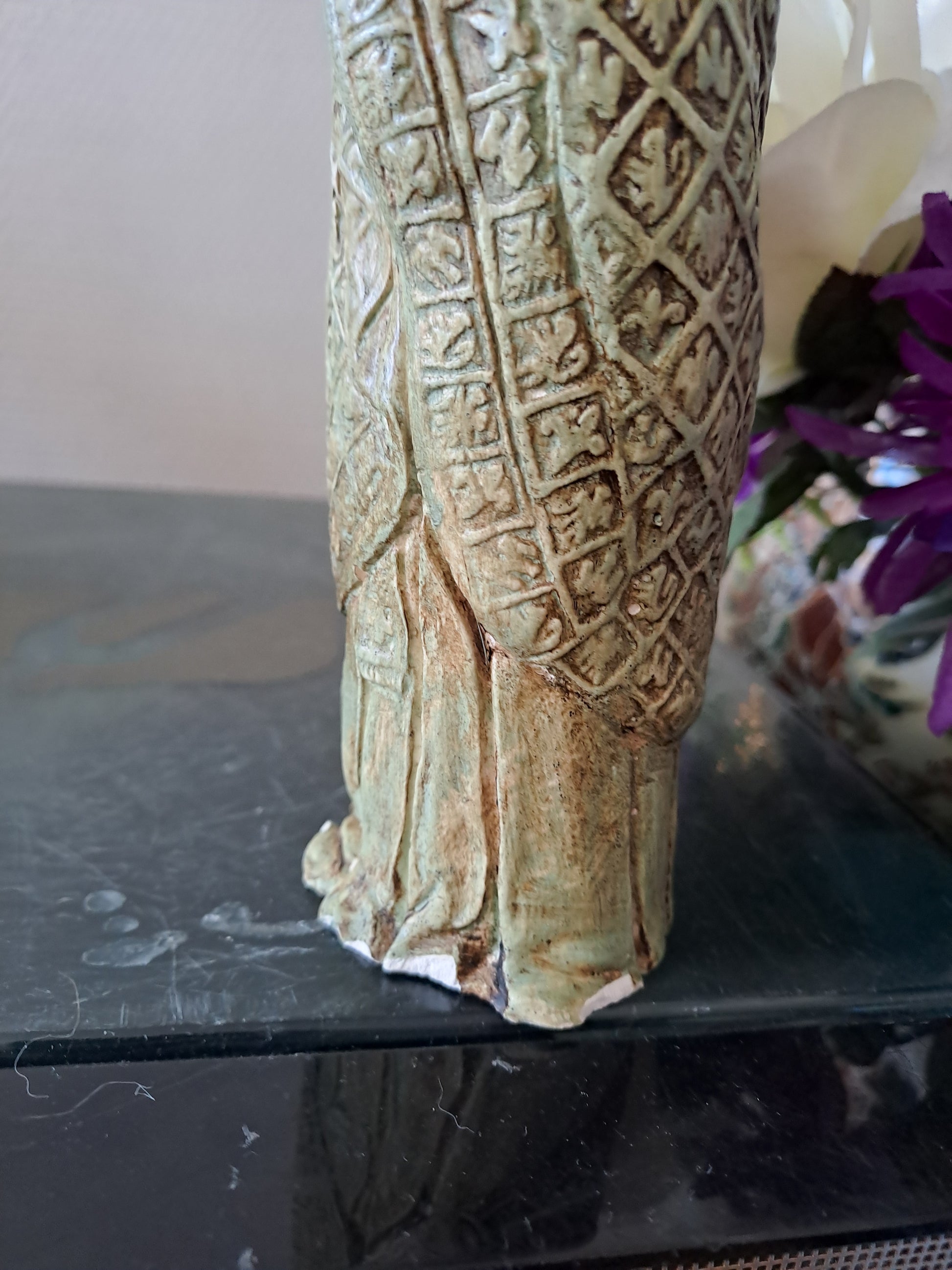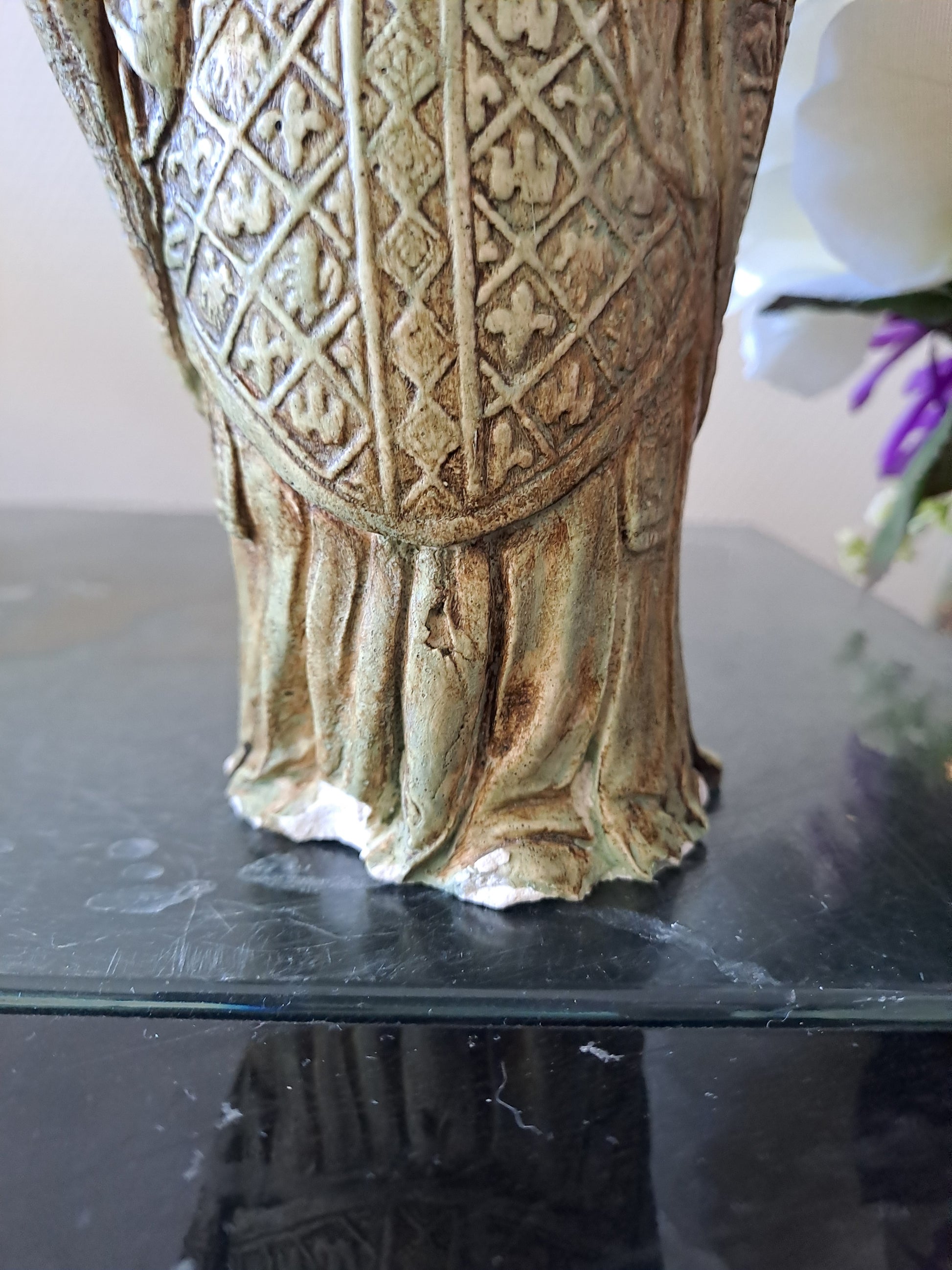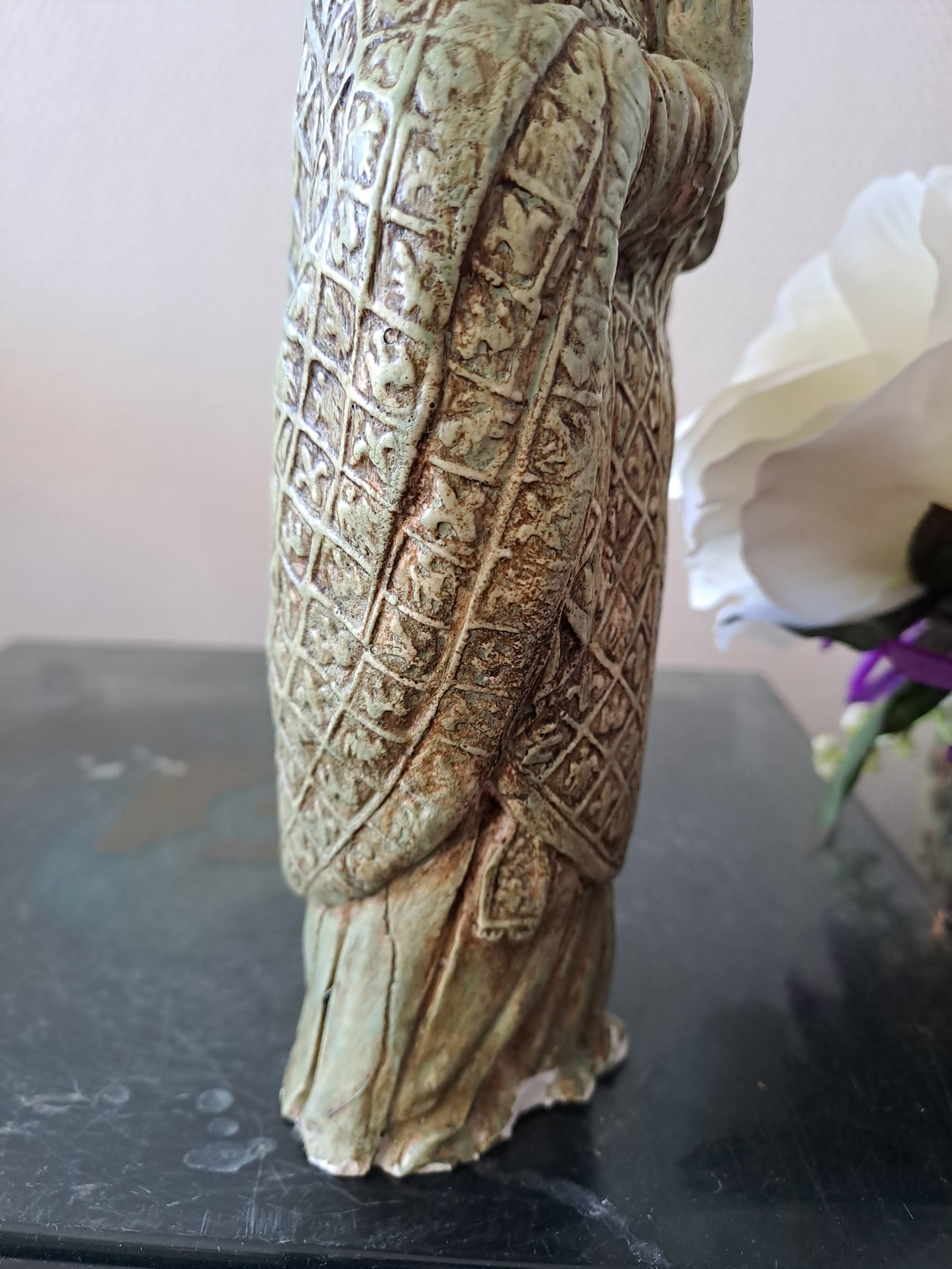 La Statue présence des traces d'usures au niveau du socle, visibles sur les photos, mériteun nettoyage, le tarif est déjà adapté à cela !
